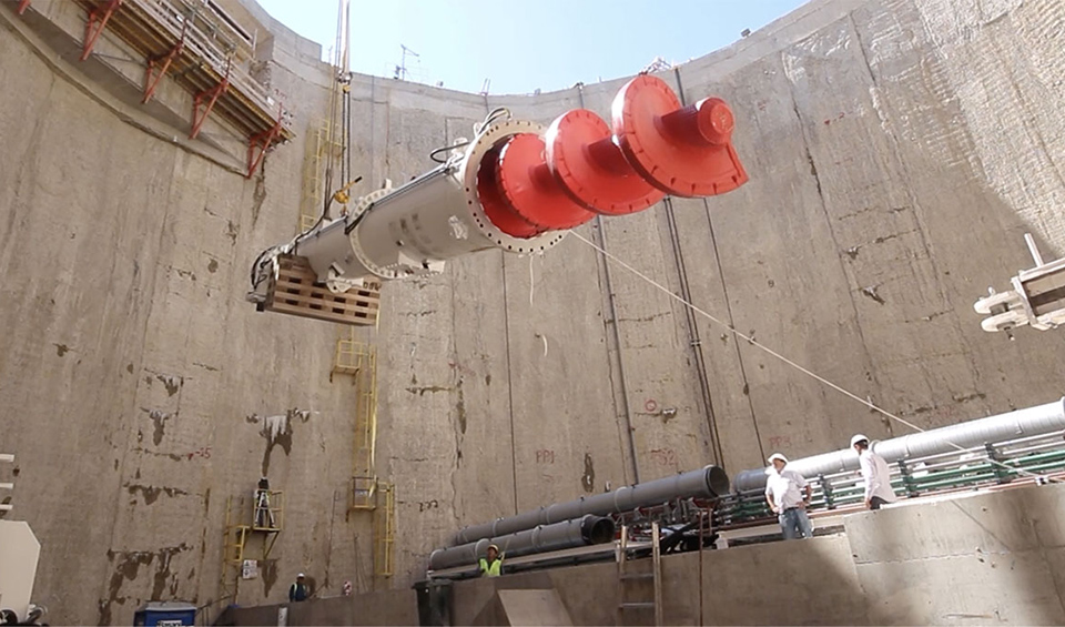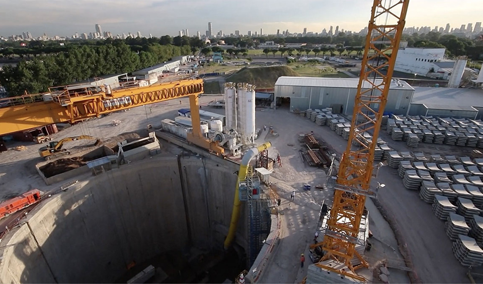 Colector general. Cañería de impulsión. Cloaca máxima descarga. Conducto en túnel 1700 mm de diám. Bajo aire comprimido a 12 m. de profundidad media y 3,4 km de longitud. Cañería de impulsión de acero 1500 y 1000 mm diám. Cloaca máxima HA diám. 1500mm.