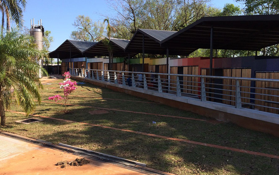 O sistema de acesso de pedestres e de veículos for resolvido, contemplando uma área de estacionamento para 4 ônibus e cerca de 40 carros.